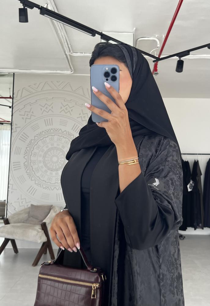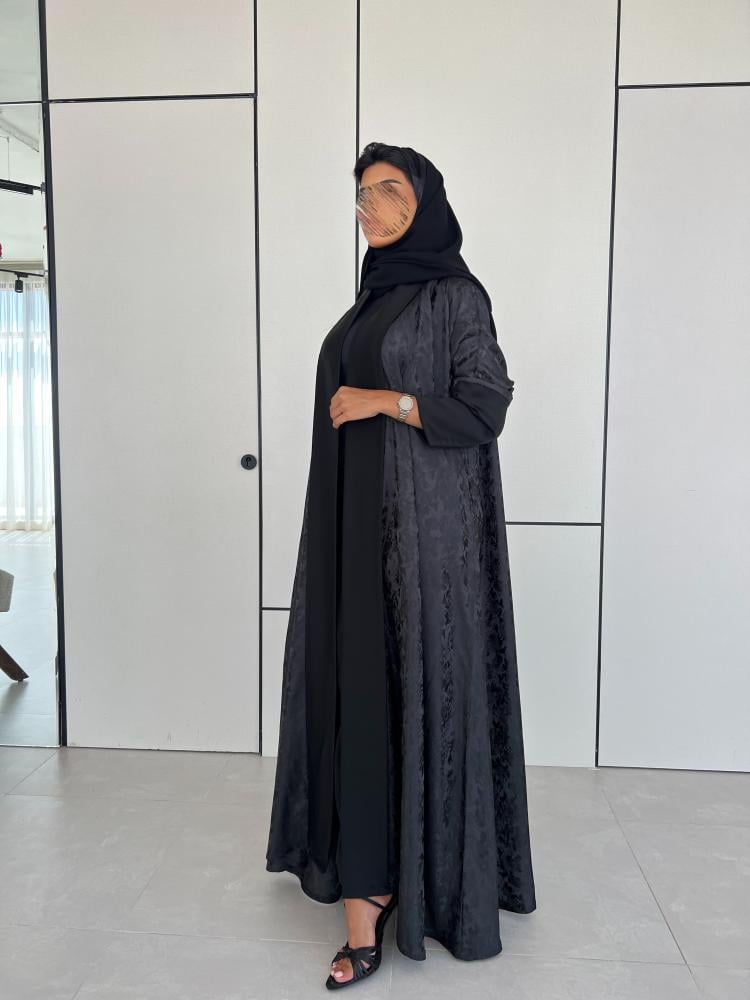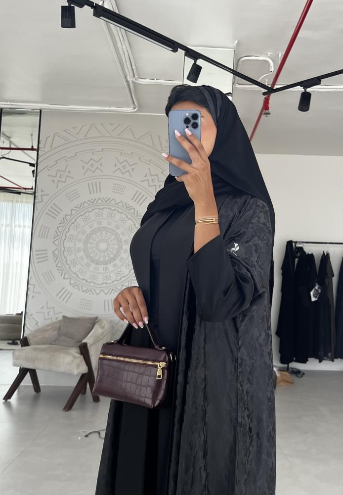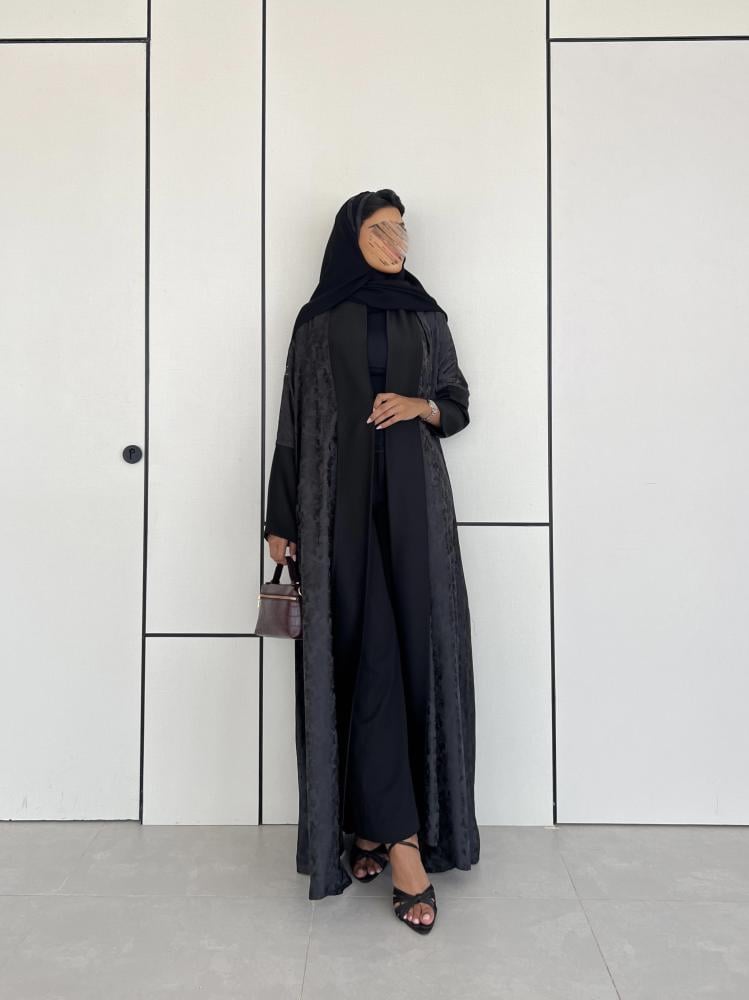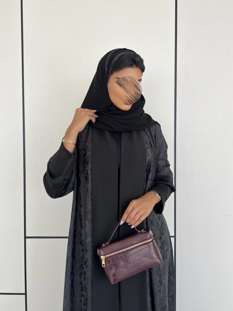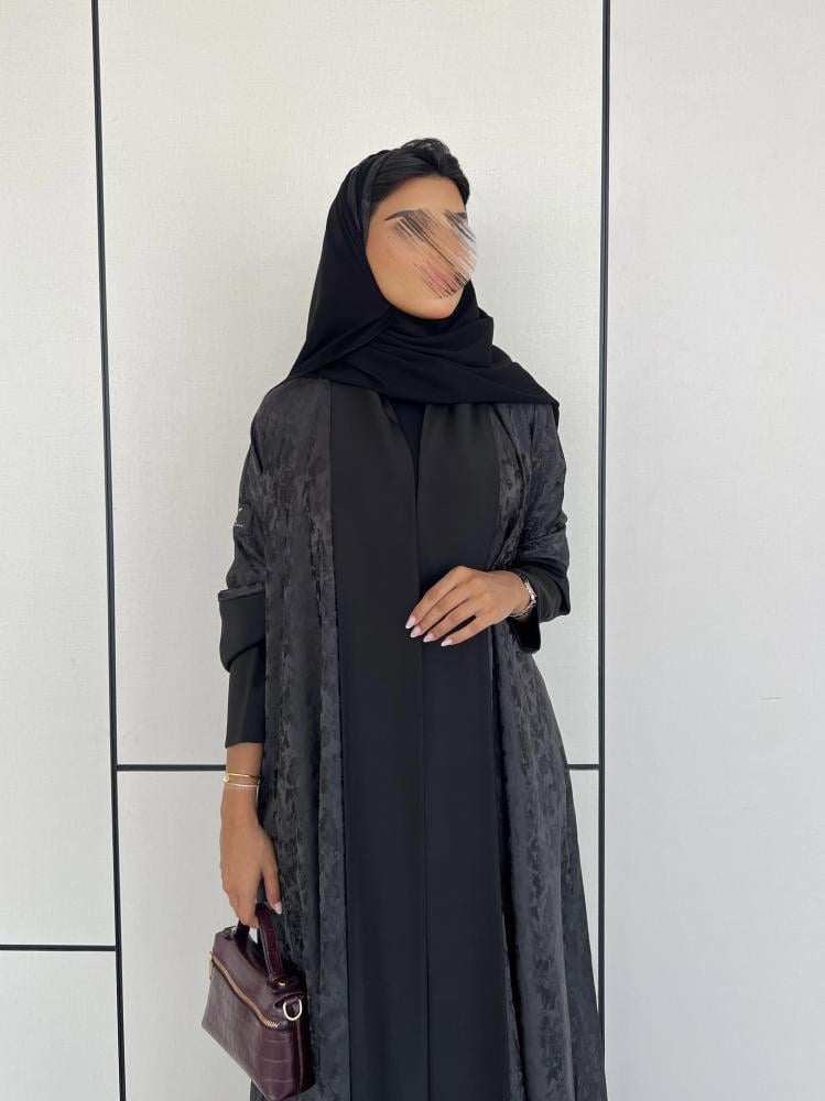 عباية كريب حرير اسود مشجر مع حرير اسود سادة