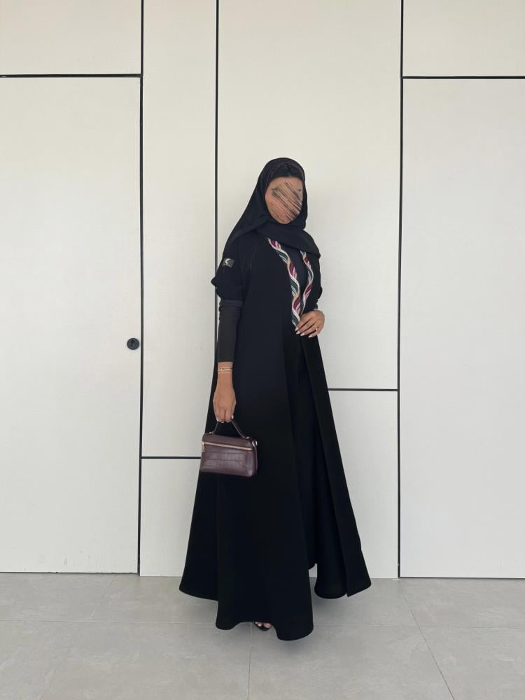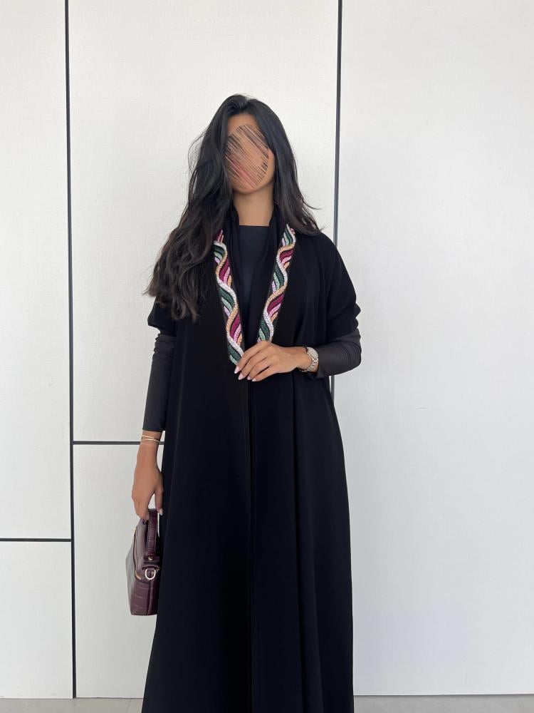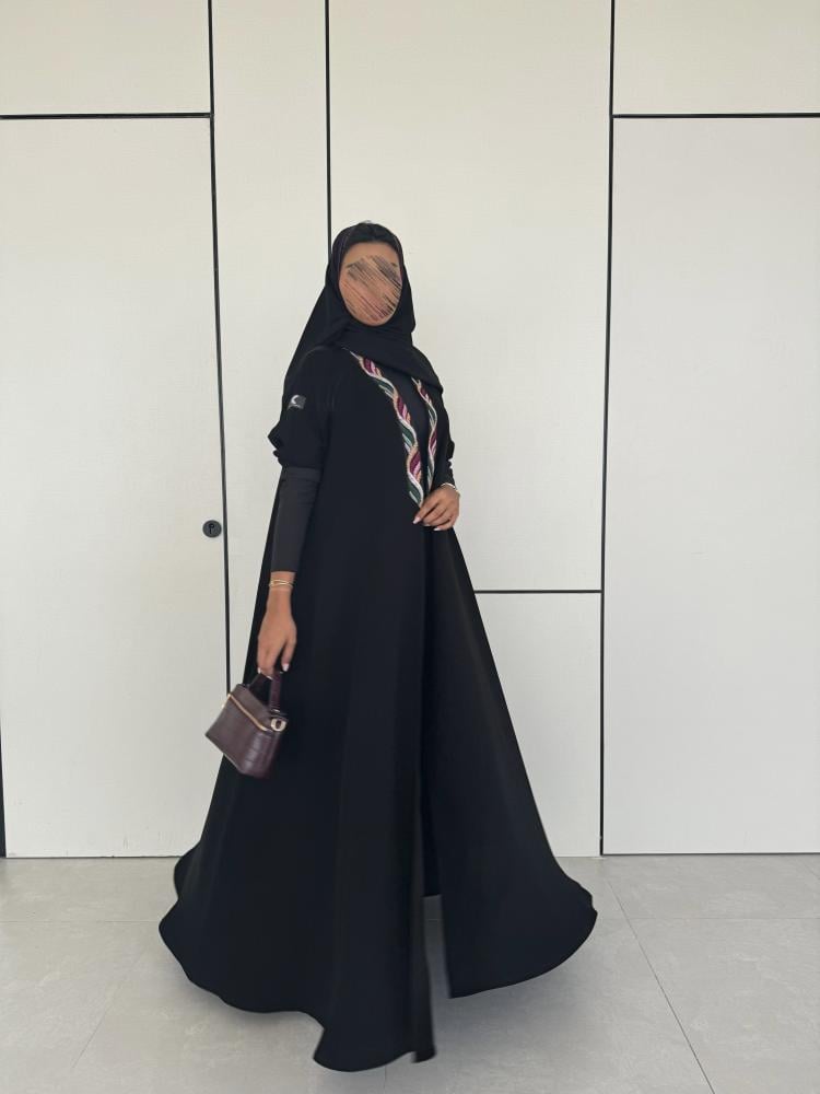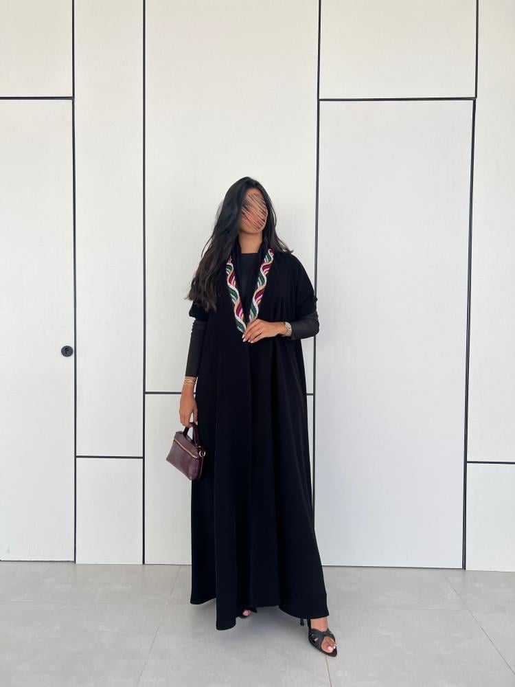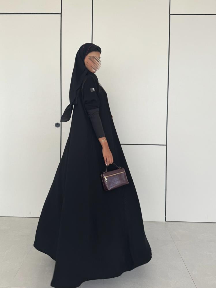 عباية كريب ملكي اسود مع اكمام استرتش