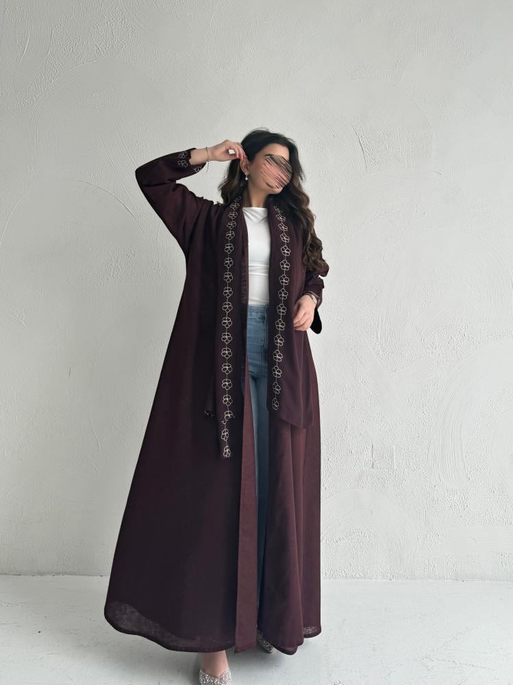 عباية لنن عودي مع تطريز يدوي
