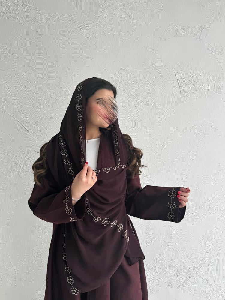 القماش: لنن هندي عودي مع تطريز يدوي على العباية والطرحة
